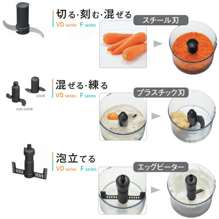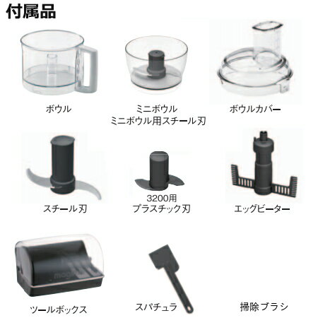 ●付属品:ボウル、ミニボウル、ミニボウル用スチール刃、ボウルカバー、スチール刃、プラスチック刃、エッグビーター、ツールボックス、スパチュラ、掃除ブラシ●回転数:1,500r.p.m.(50hz)/1,800r.p.m.(60Hz)(無負荷時)●液体物処理量:0.7L●ミニボウル容器容量:1.0L●ミニボウル液体物処理量:0.4L●サイズは突起物を含みません。